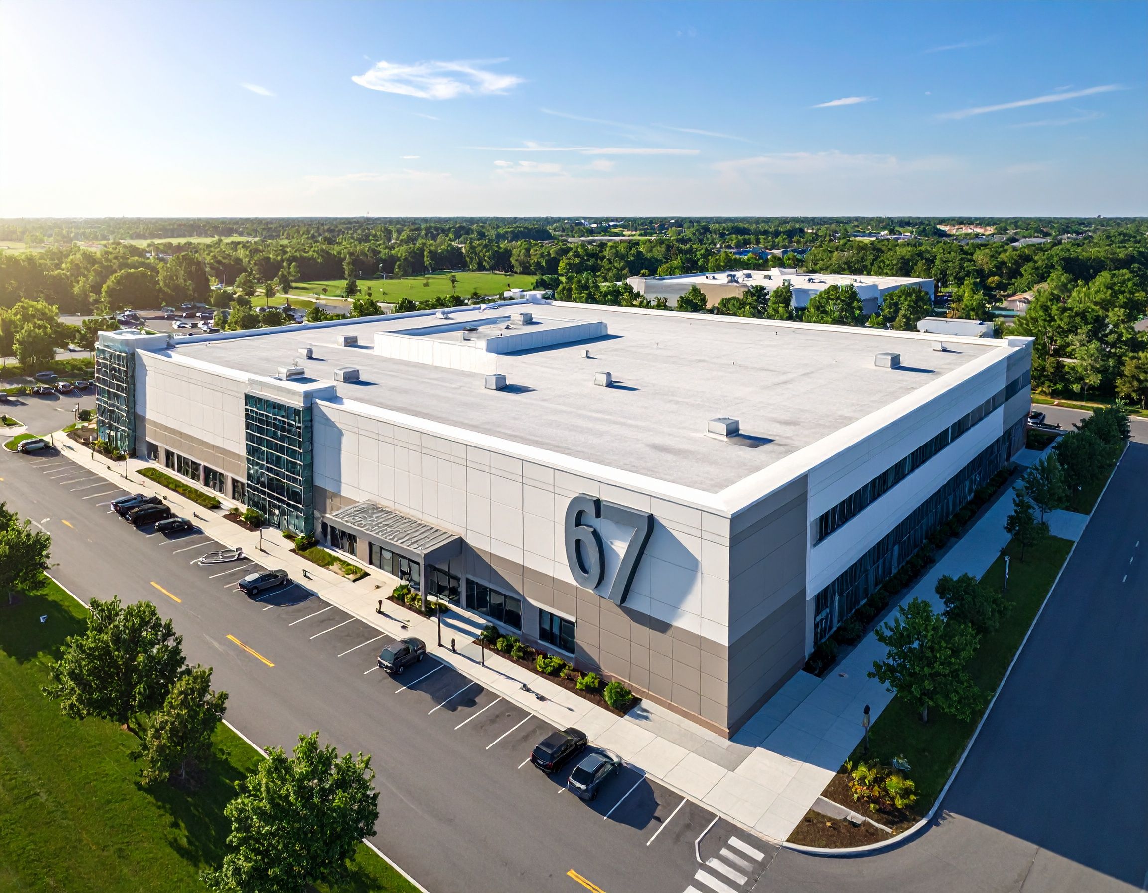 Der moderne Gebäudekomplex mit dem markanten „67“-Logo steht für Wachstum, Innovation und Leidenschaft für den Fußball – ein neues Zuhause für kreative Ideen und starke Teams.
